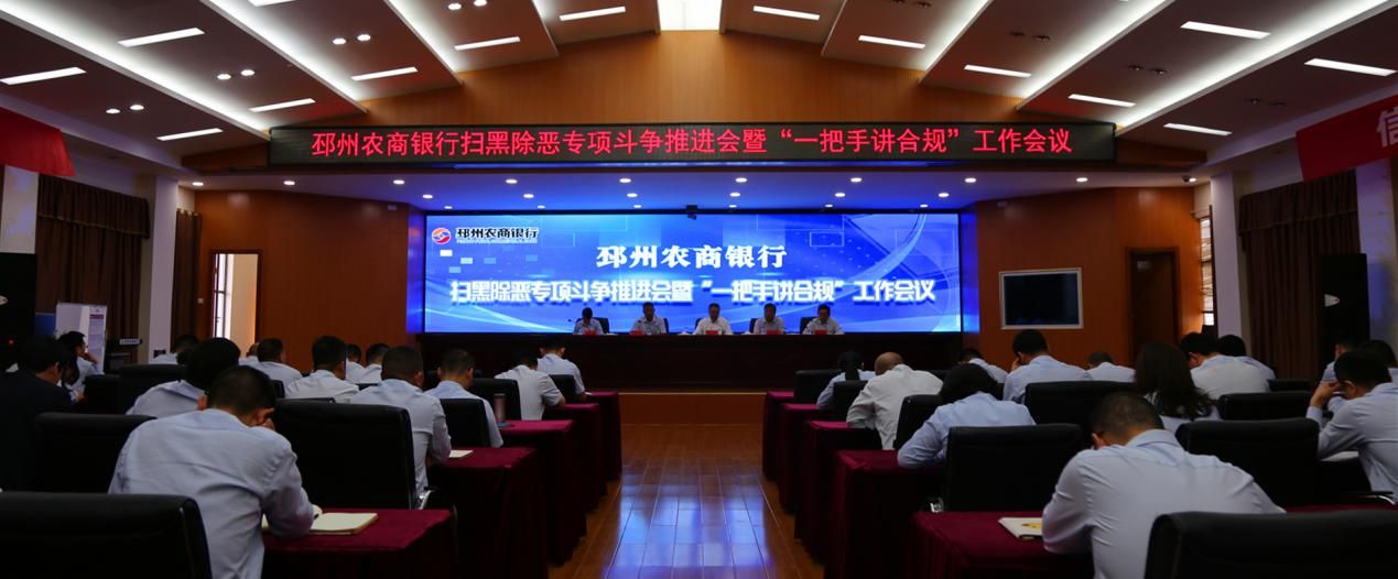 根據(jù)習(xí)近平總書記關(guān)于掃黑除惡專項斗爭的重要指示精神和監(jiān)管部門、省聯(lián)社黨委、市委的部署要求,2019年5月28日,邳州農(nóng)商銀行召開掃黑除惡專項斗爭推進會暨“一把手”講合規(guī)工作會議。